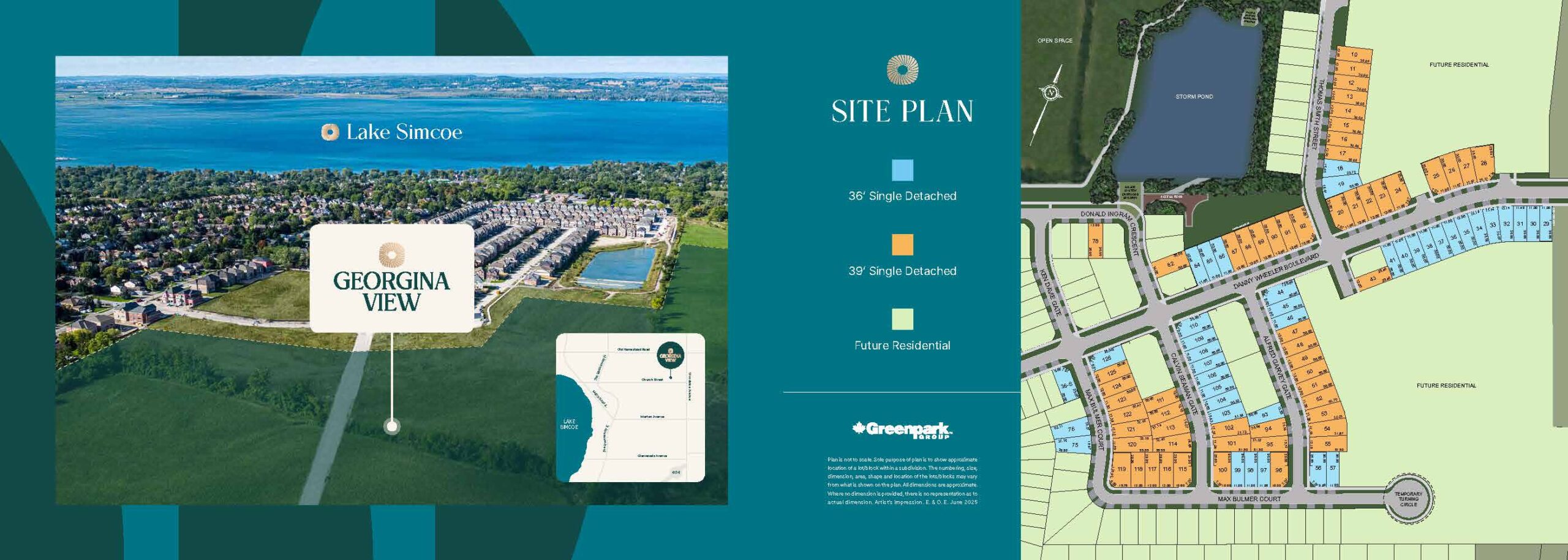 Georgina View in Keswick by Greenpark, a peaceful community located at Church Street and Woodbine Avenue, just minutes from the beautiful Cook’s Bay waterfront. Choose from a collection of 36’ and 39’ single detached homes, all featuring spacious layouts and double-car garages